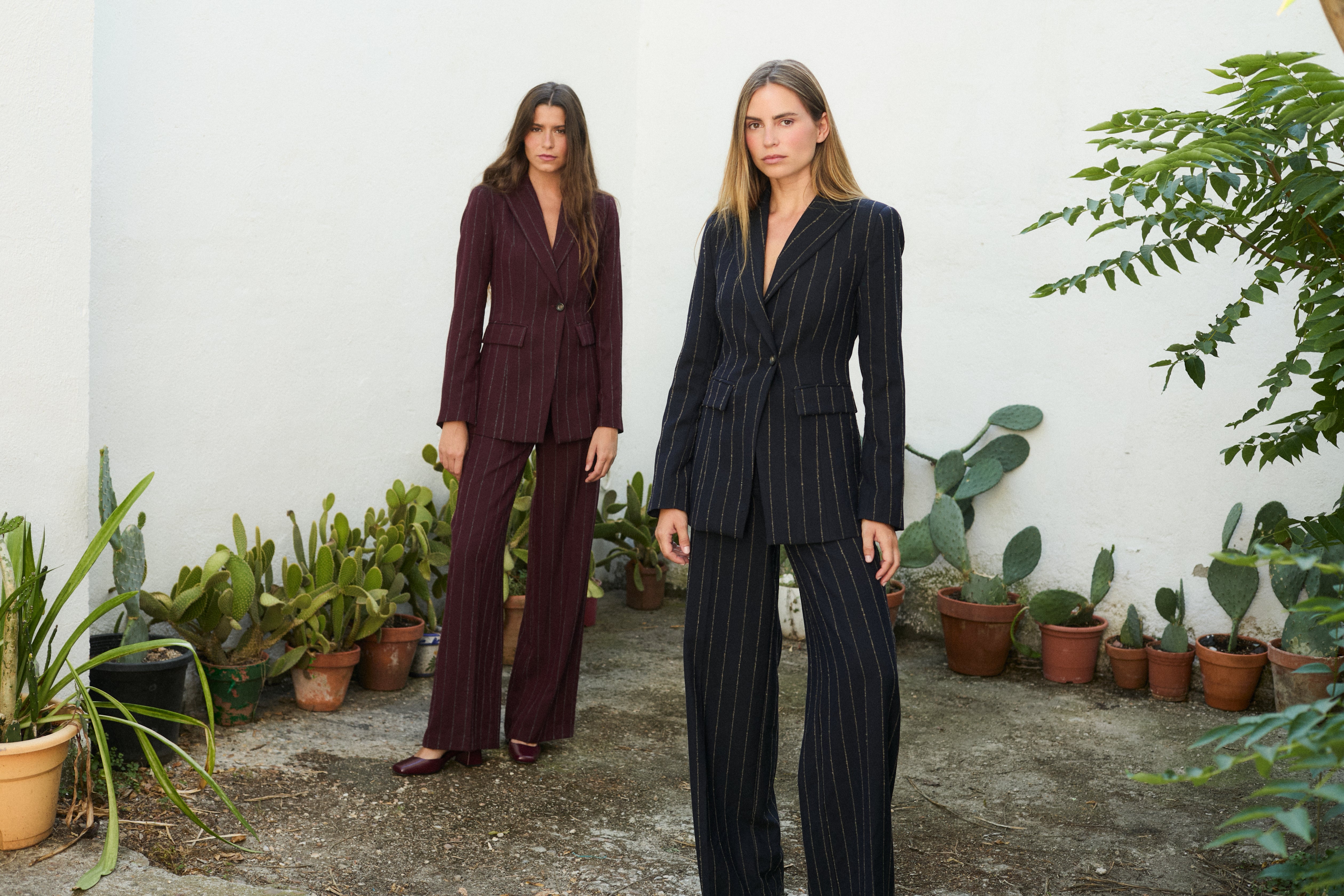 Fitted blazer with shoulder pads in eggplant color with embroidered detail in gray tone. Cross closure with button.