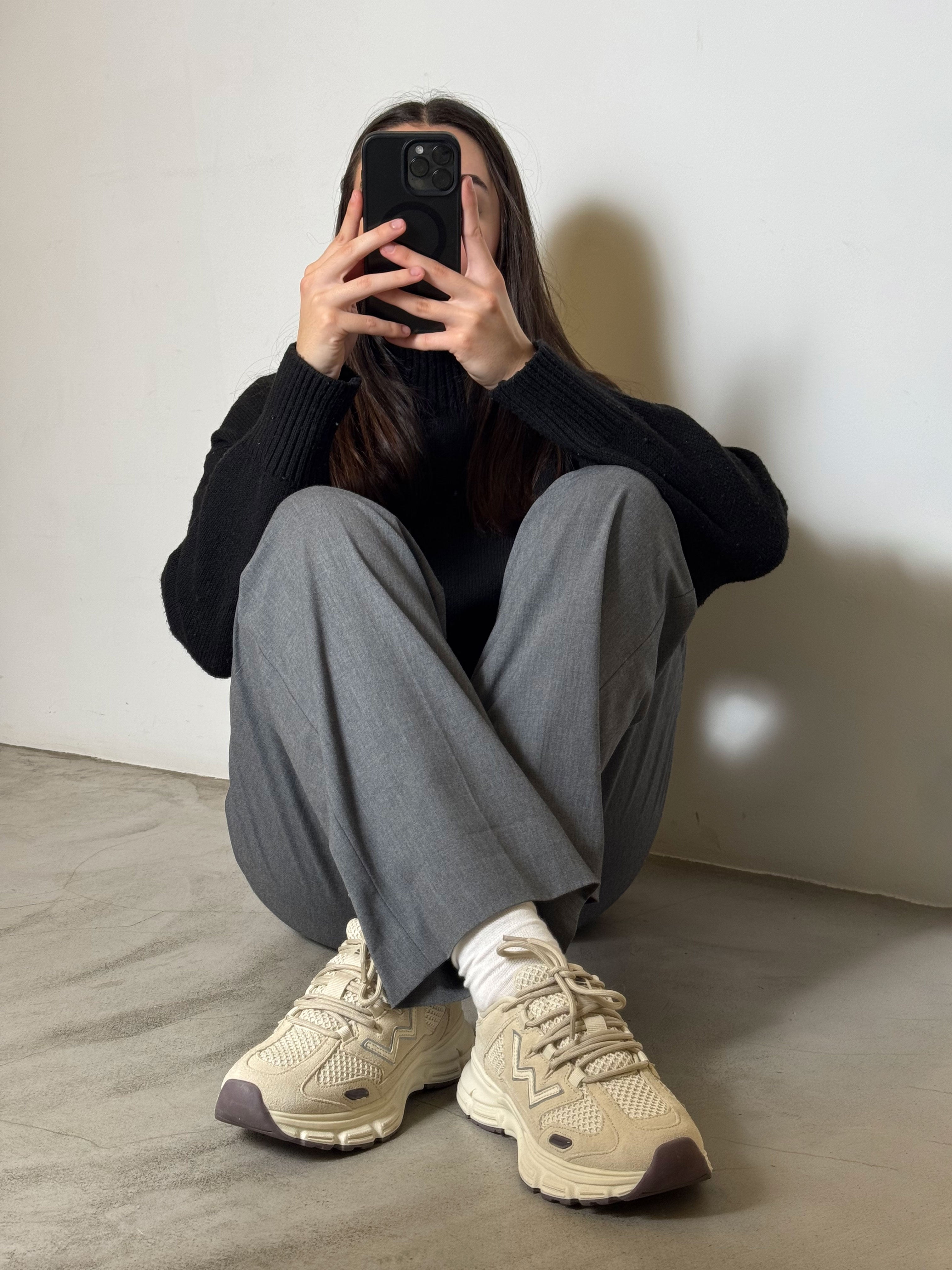Leather running-style shoe with mesh details in beige tones with the MIM logo. Lace-up closure.