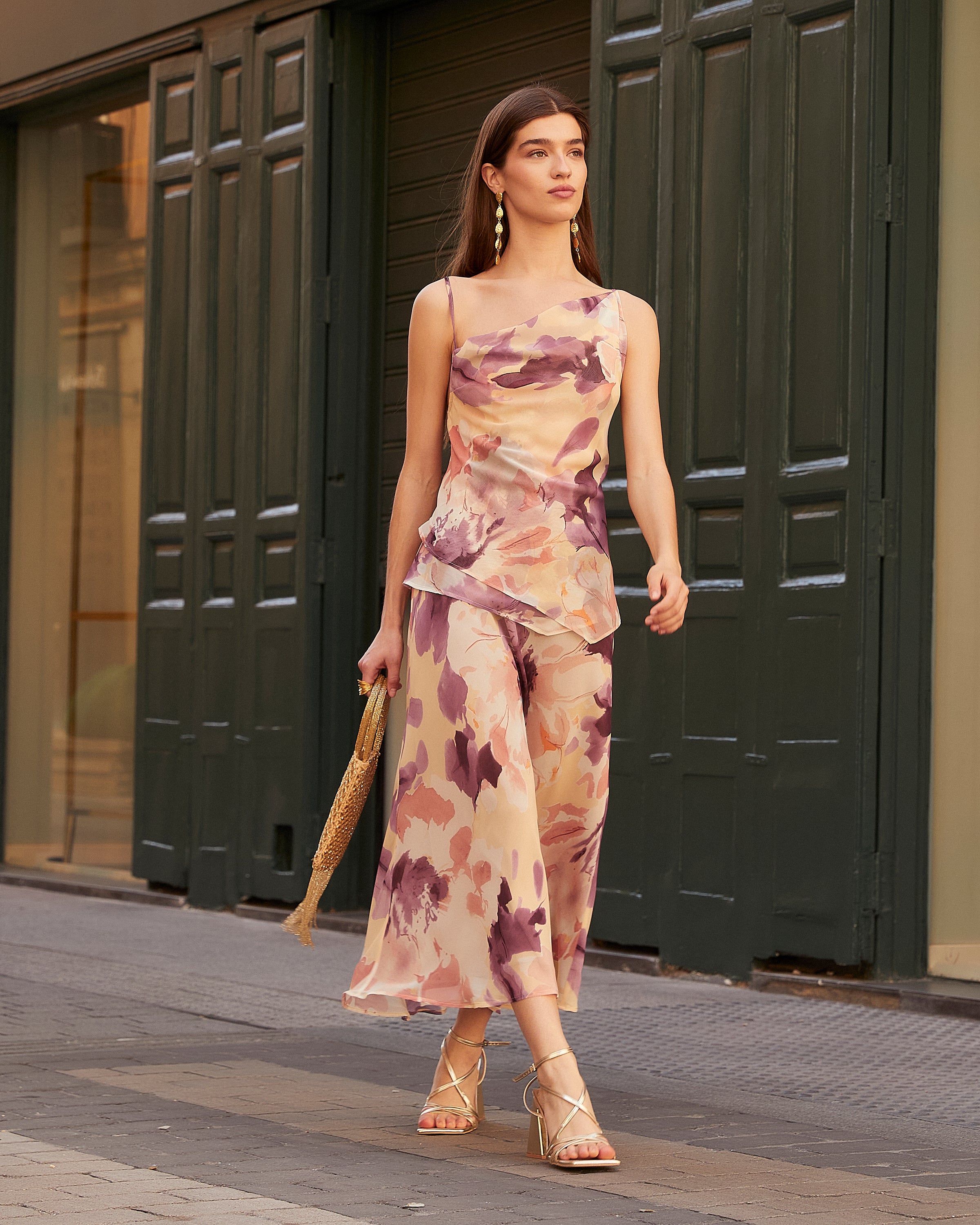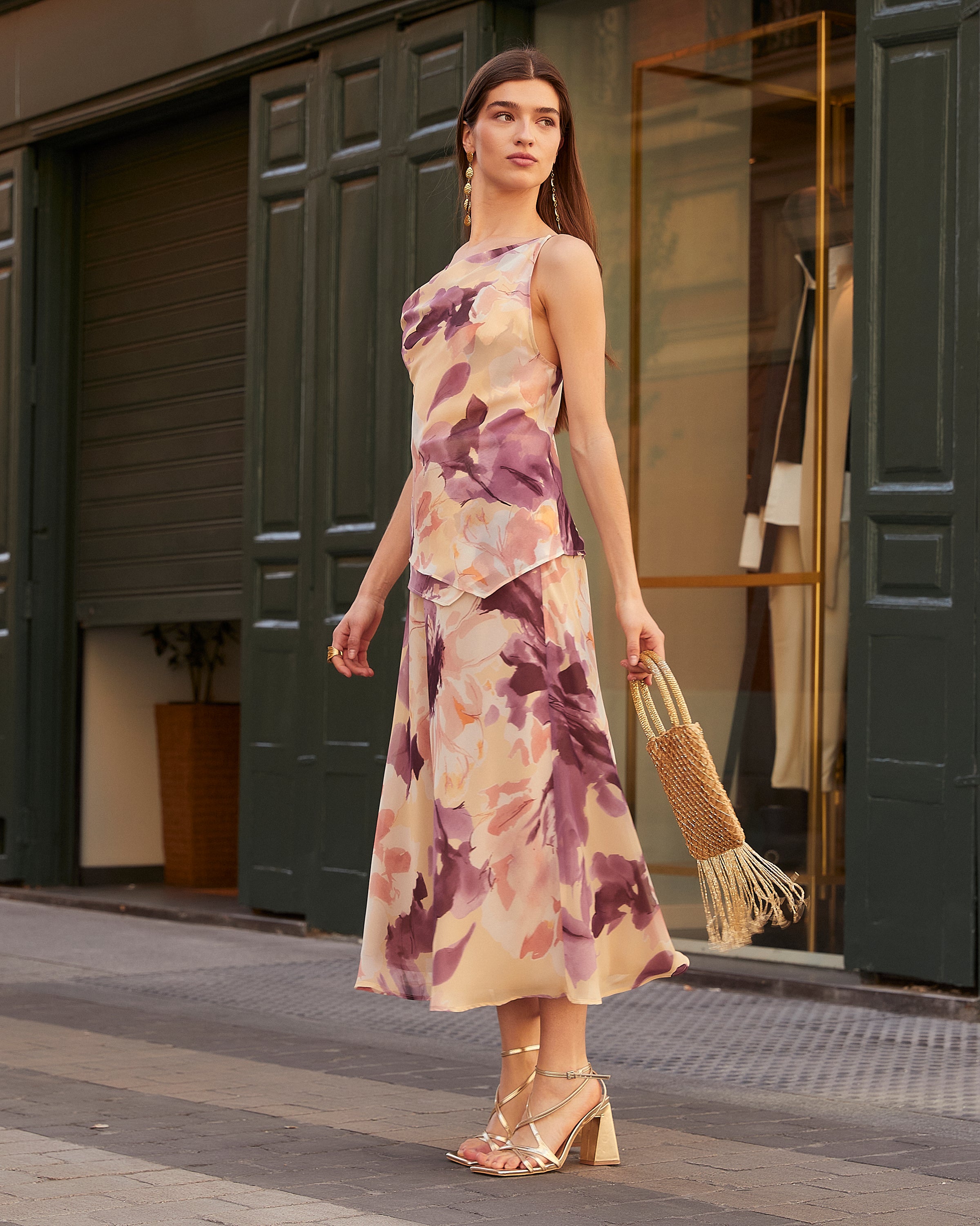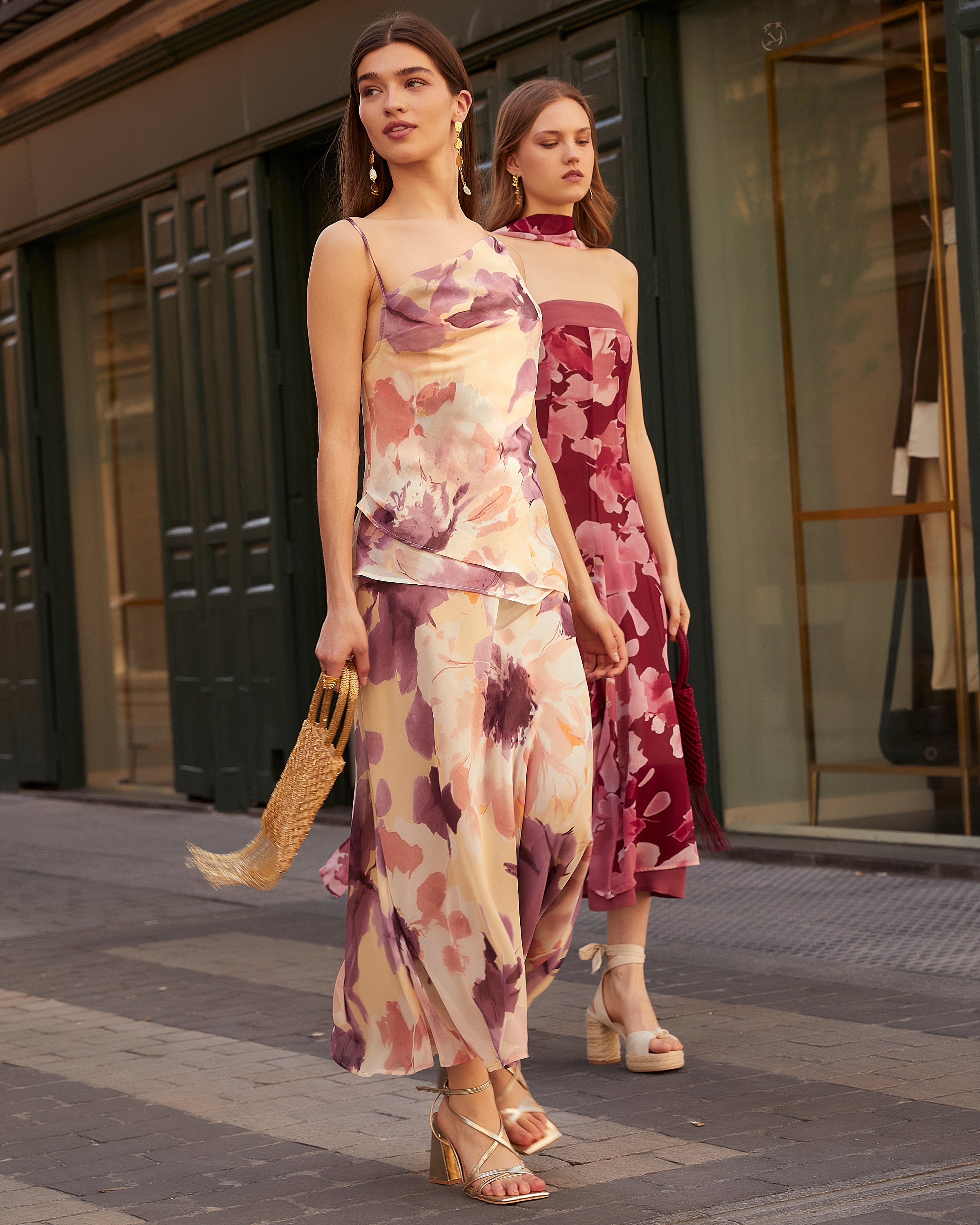 Falda midi fluida con bajo acabado en volumen. Tiro medio con cintura elástica . Print de motivos florales en tonos amarillos y lilas. Forro interior combinado a contraste.