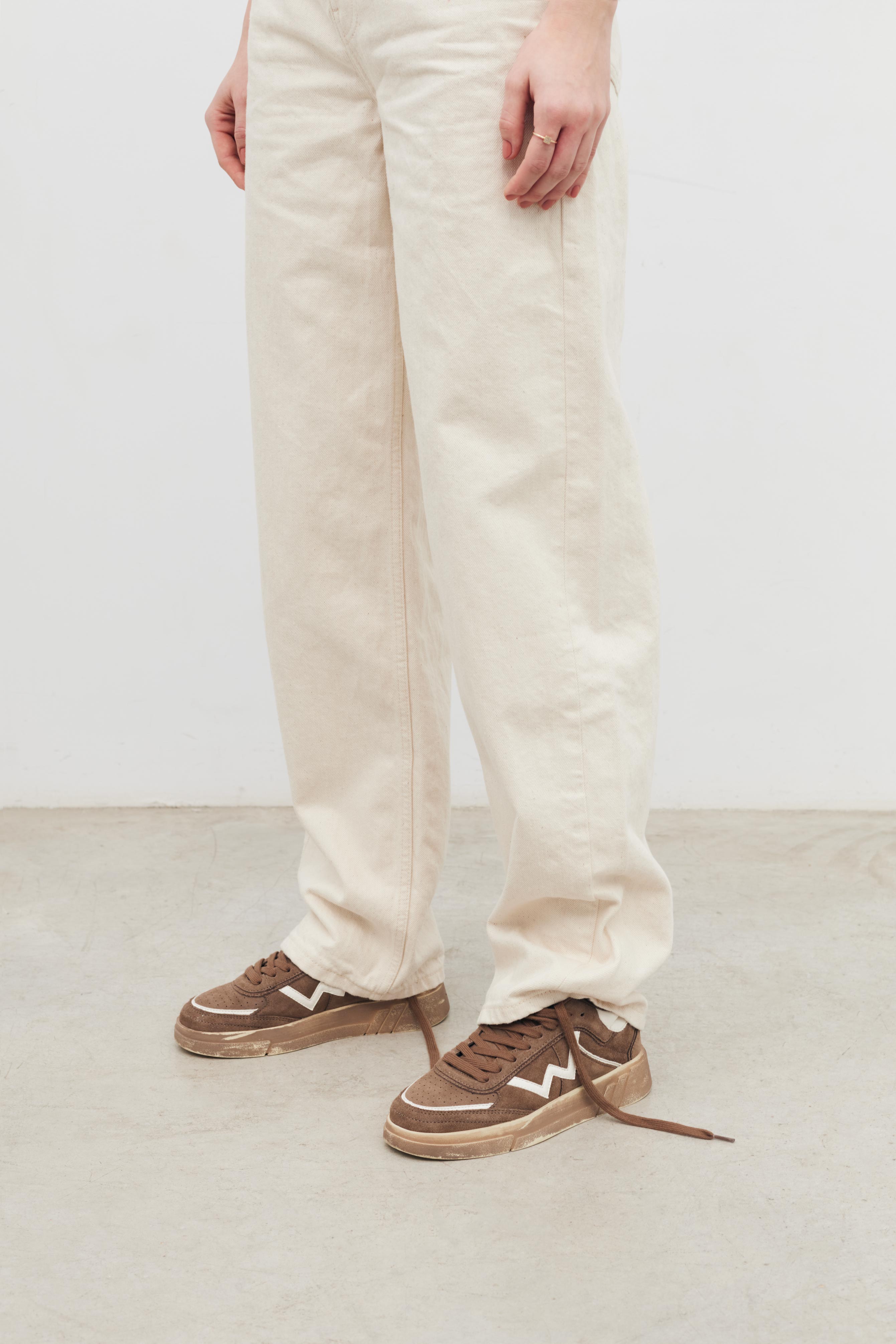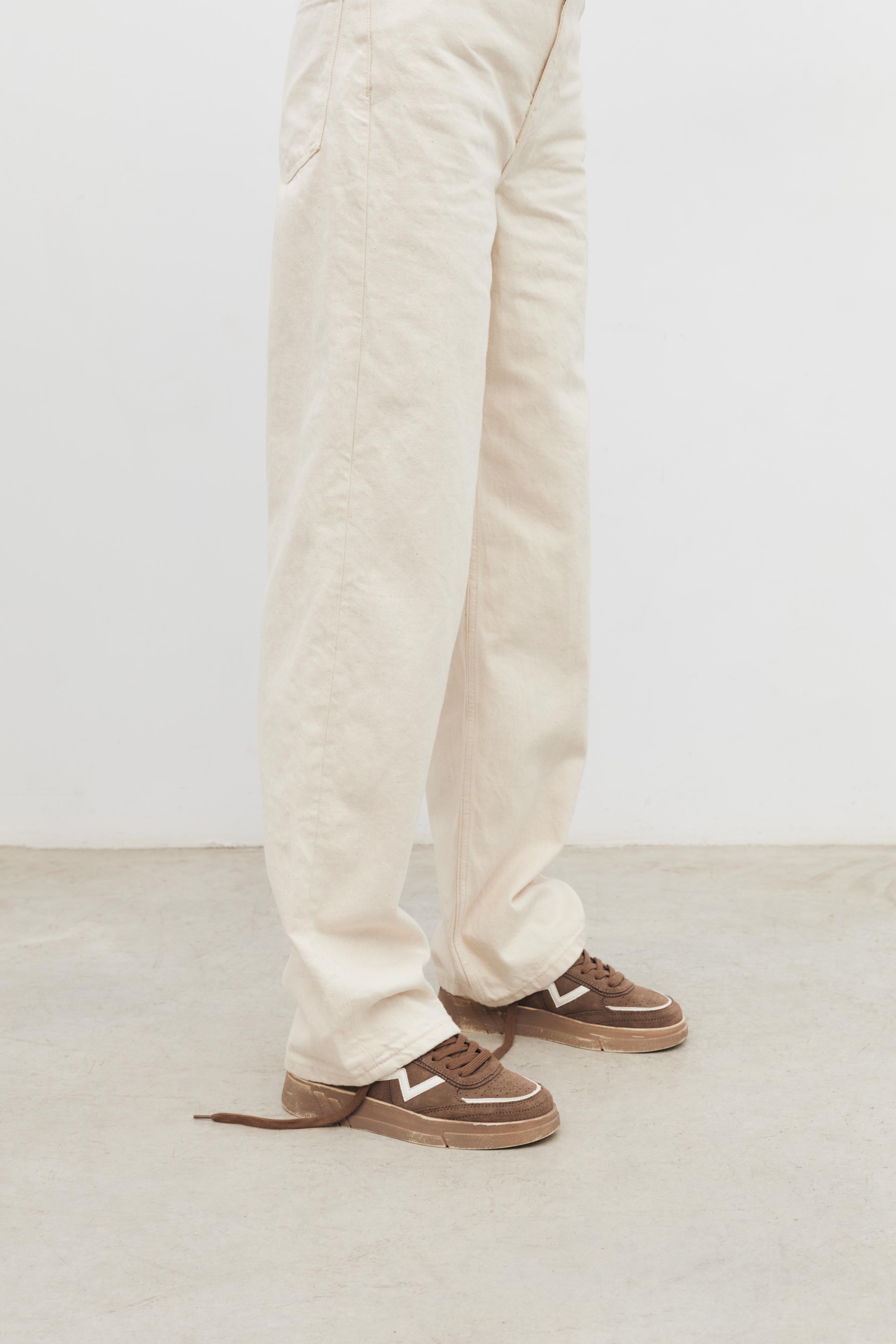 Zapatilla en tonos marrones con logo de MIM. Cierre con cordones.
