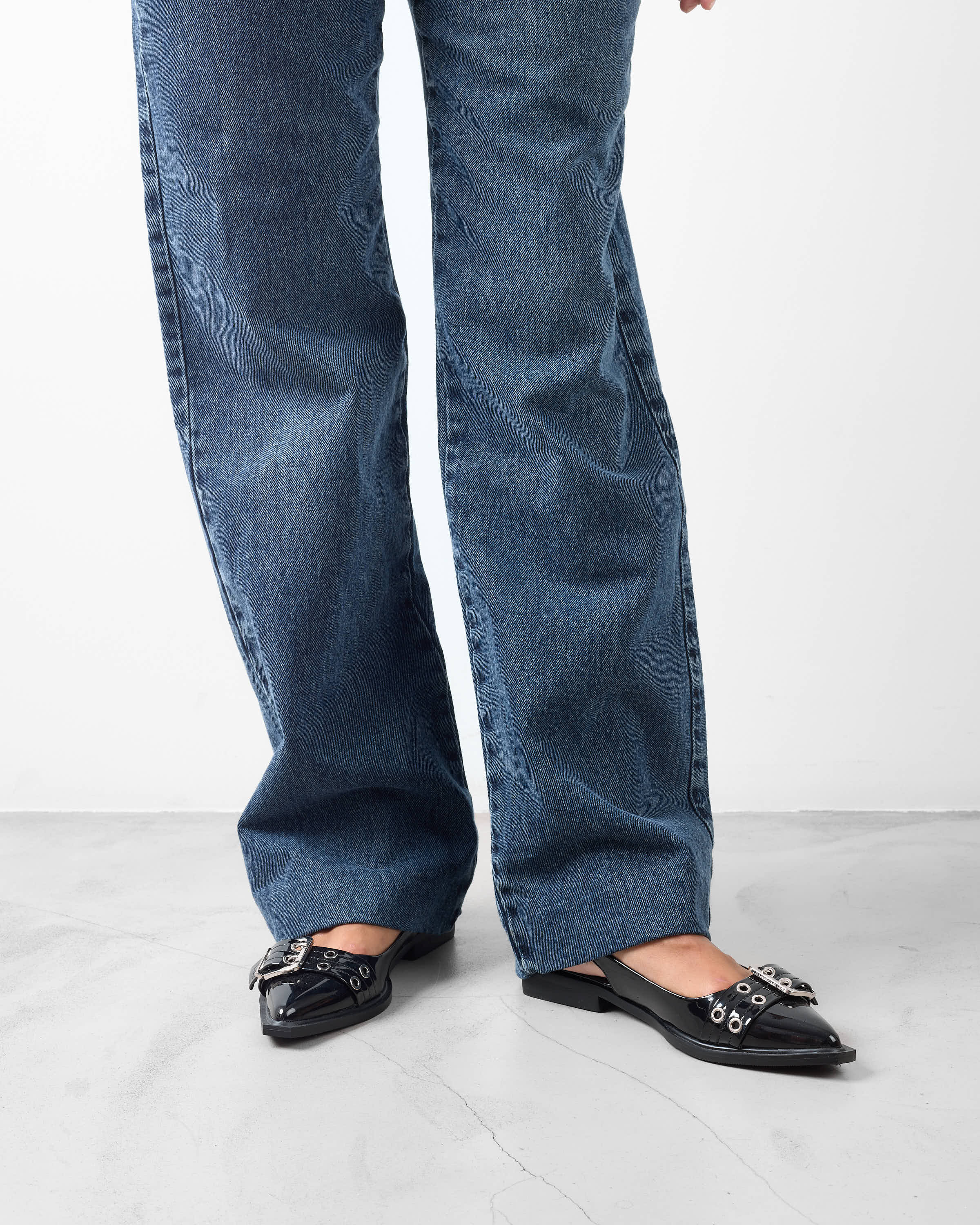 Zapato cerrado efecto charol en punta.Parte trasera destalonada en color negro.