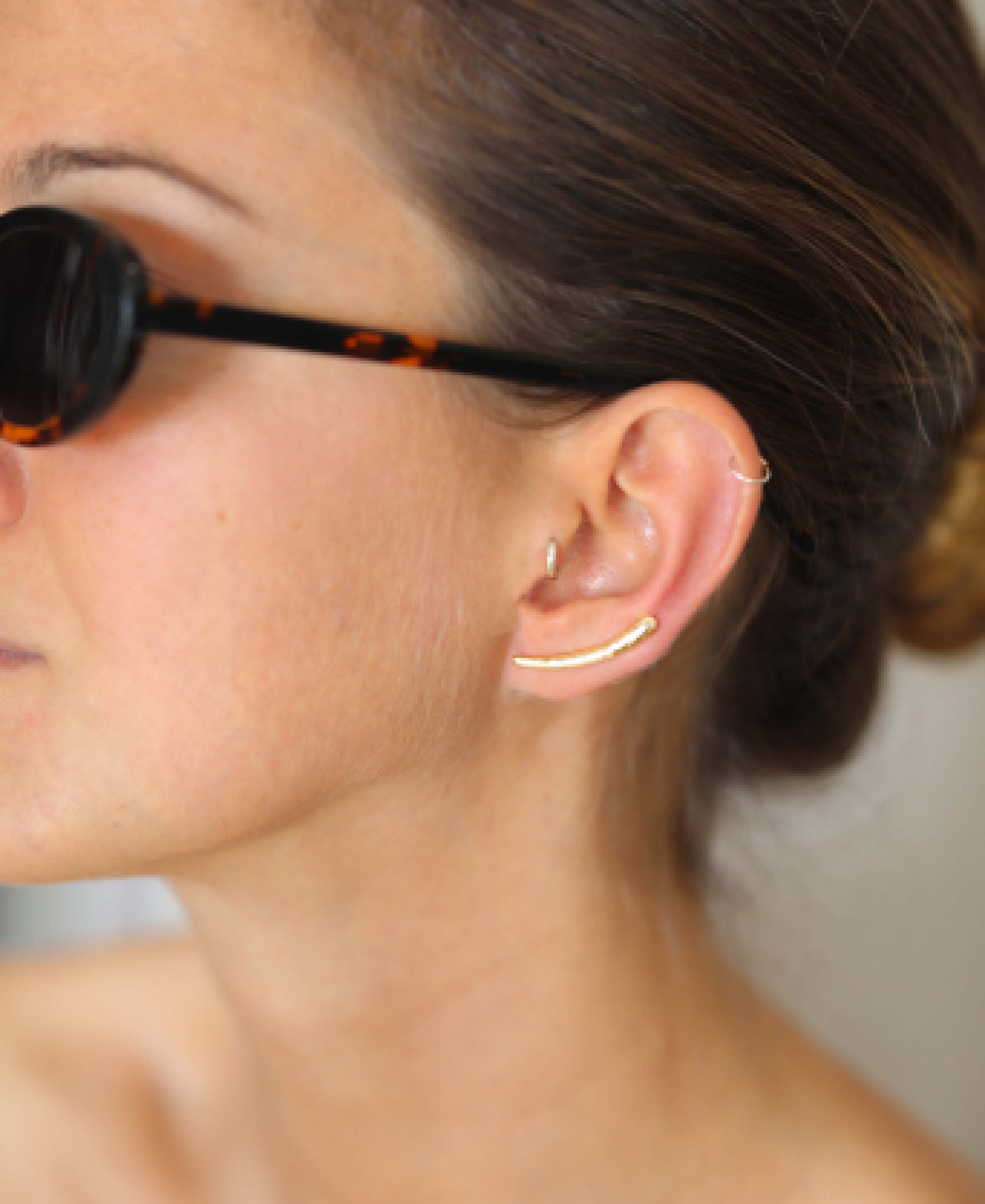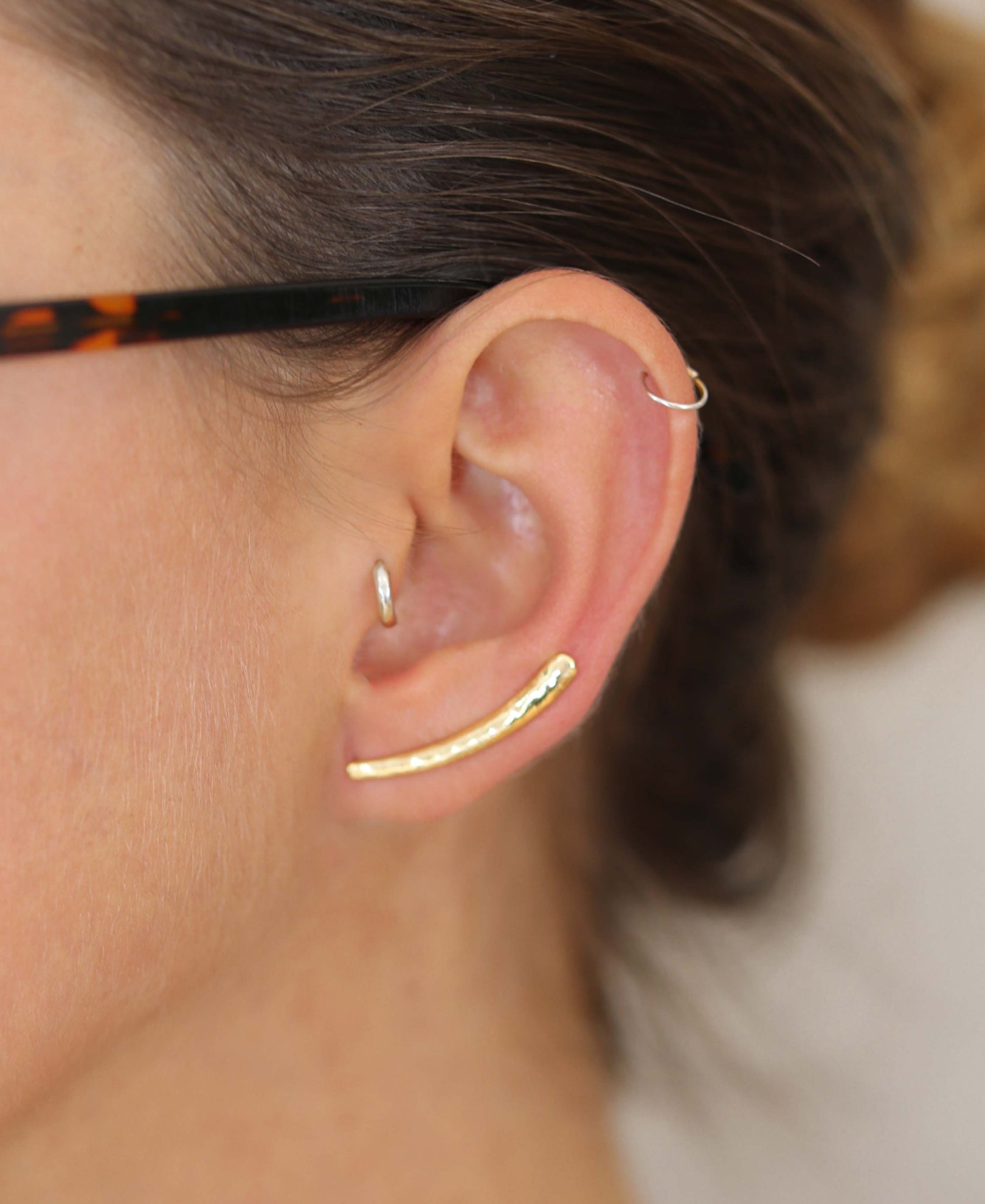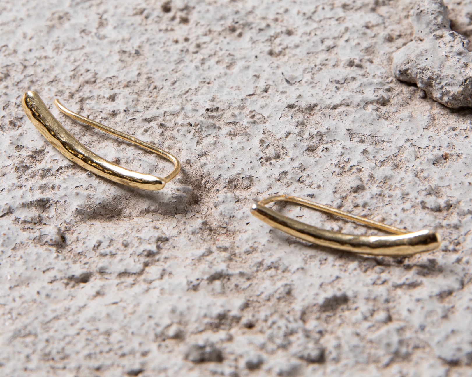 Par de earcuff dorados con relieve en martelé.